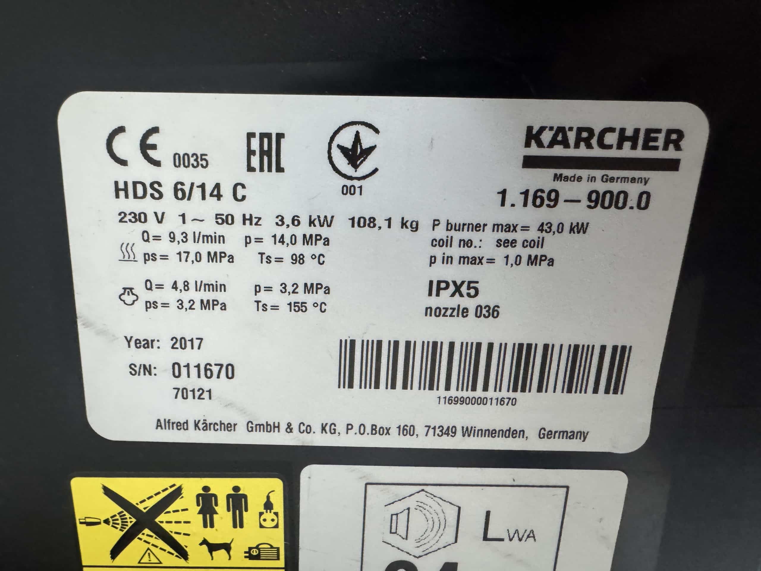 KARCHER HOGEDRUKREINIGER WARMWATER HDS 6/14 C 230v