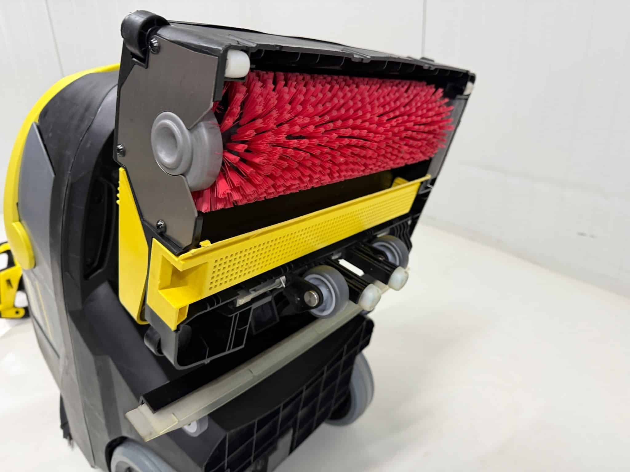 Ca. 200° draaibare borstelkop met KART-technologie. Zo laat de machine zich makkelijk sturen. Voor het comfortabel rijden in bochten Zeer wendbaar en efficiënt, ideaal voor de beperkte ruimte. De borstel staat altijd dwars op de rijrichting. De zuigbalk zuigt het water in elke bocht op betrouwbare wijze op. Indien nodig kan ook tijdens het achteruitrijden worden gereinigd en gezogen.