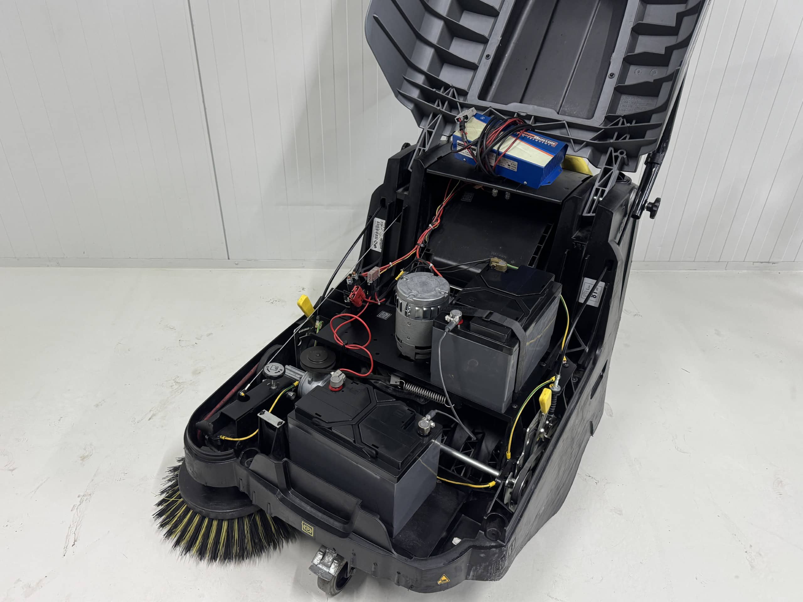 Handbediende, batterijaangedreven veegmachine KM 75/40 W Bp Pack met comfortabele aandrijving, batterij standaard meegeleverd en elektronisch gestuurde ingebouwde lader.